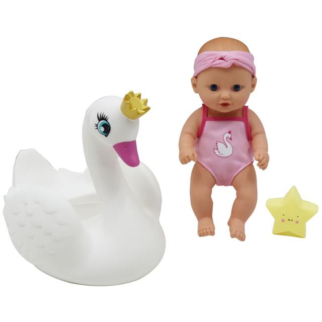 Specifications Depth:7.5 Manufacturers Guarantee:No Manufacturers Guarantee Details:NA Manufacturers Warranty:No Manufacturers Warranty Details:NA Model No:23117 ProductID:0000000330088 Restricted Locations:This item cannot be shipped to: AK CA HI ME OR VT WA SkuId:101202832 Width:10.0 Highlights For ages 2 years and up An assortment of baby dolls with their own cute animal floaters for fun at bath time All vinyl doll Choose from a swan, flamingo, unicorn or a narwhal floater Includes doll, animal floater and swaddle Selection may vary by store Weight: Approximately 2.53 pounds Shipping Dimensions: Approximately 11.5 x 10.5 x 7 inches.
