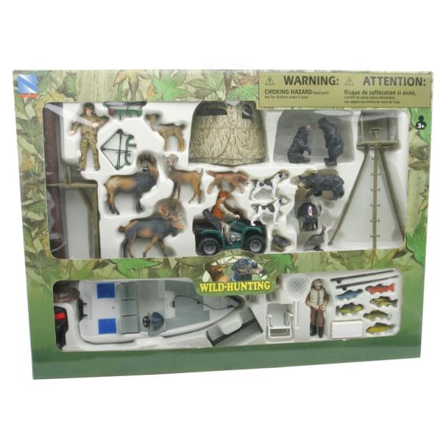 Let your Child’s Imagination Grow as they Explore the Great Outdoors with this Deluxe Hunting Playset. Your Three Hunter Figures can Sit out in Two Hunting Posts, Ride an ATV, Camp out in a Tent and Ride the Waters on their Fishing Boat.